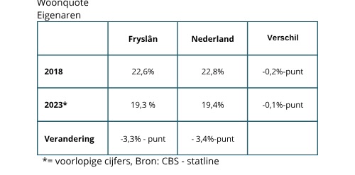 Het grotere aandeel eigenwoningbezit in Fryslân kan ervoor zorgen dat de gemiddelde woonquote in Fryslân lager is dan landelijk. Zoals eerder benoemd, ligt de woonquote voor huurders hoger dan voor eigen woningbezitters.